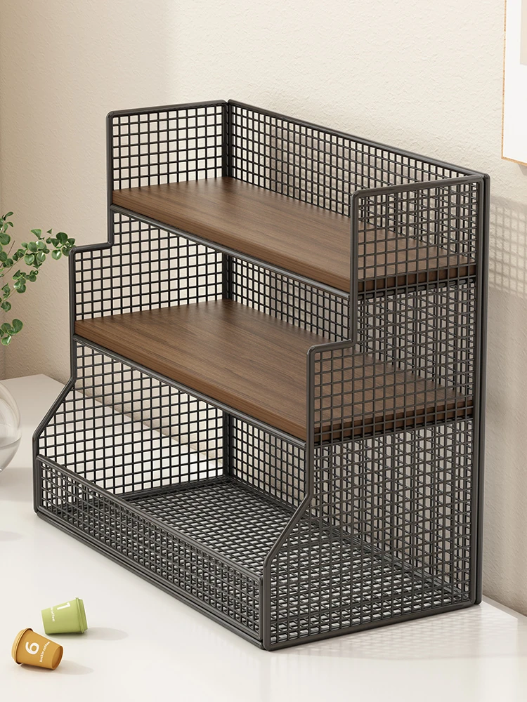 キッチンデスク用多層収納ラック - スナックやティーバッグをスマートに整理!テーブルの上をスッキリと保ち、便利な収納ボックス付き。水杯や小物もまとめて収納できる、あなたの生活を豊かにするアイテムです!