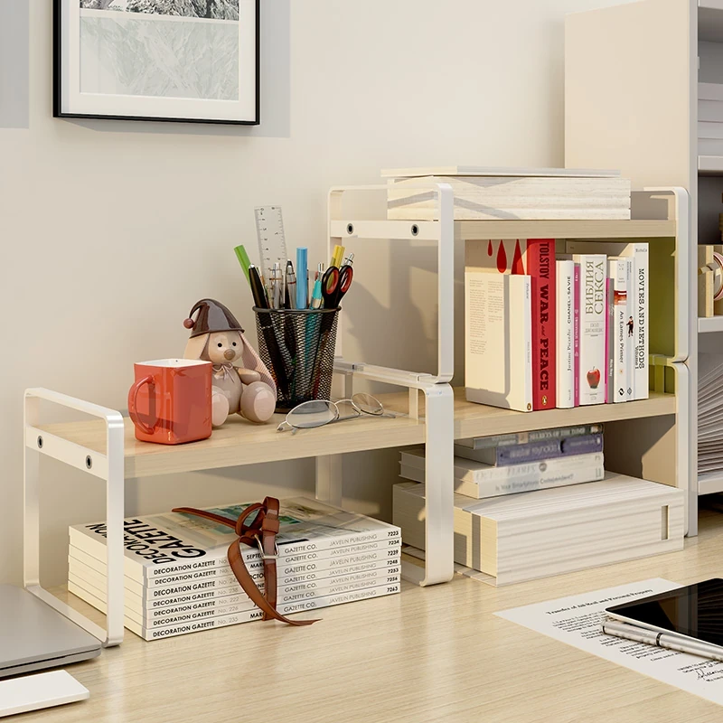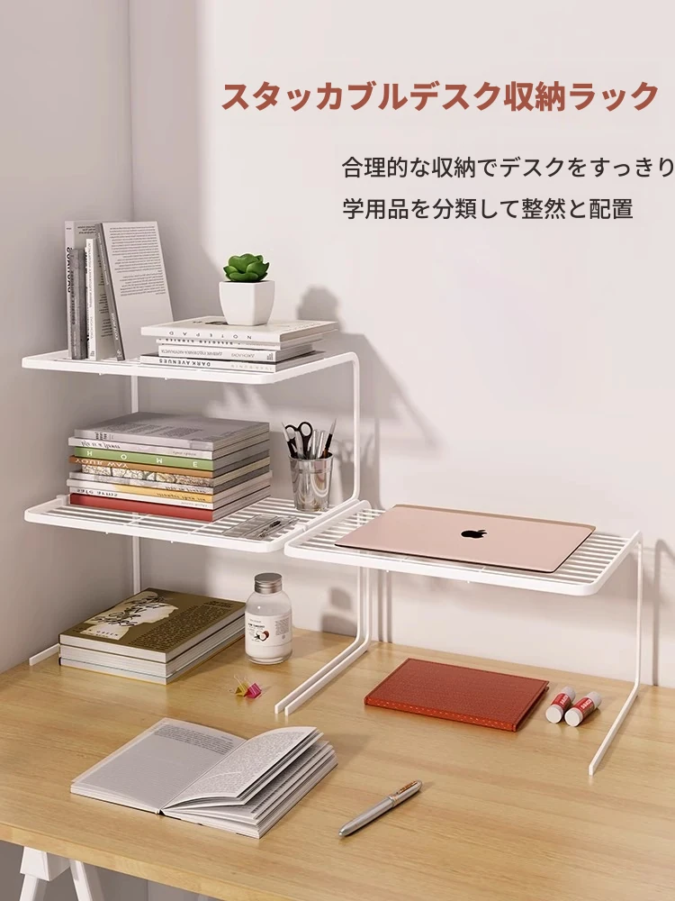 デスク用多層収納ラック - スペースを有効活用!小型本棚でデスク周りを整理整頓。重ねて使える便利なデザインで、オフィスや自宅の収納力をアップ!