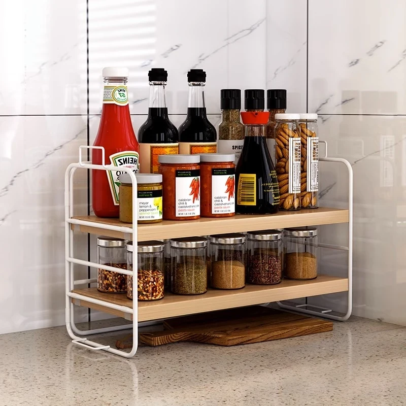 キッチンカウンター用調味料ラック - 家庭用多層スパイススタンド、マグカップや水筒も収納できる便利なマルチラック!おしゃれで機能的なデザインで、キッチンをスッキリ整理!