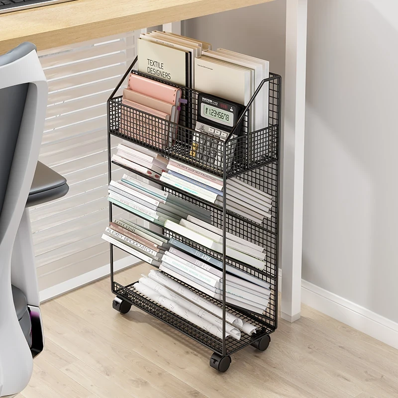 キャスター付きの移動可能な小型書棚!デスク横にぴったりなフロア収納ラック。多段式の小型カートでデスク下もスッキリ整理。あなたの作業空間をおしゃれに保ちます!