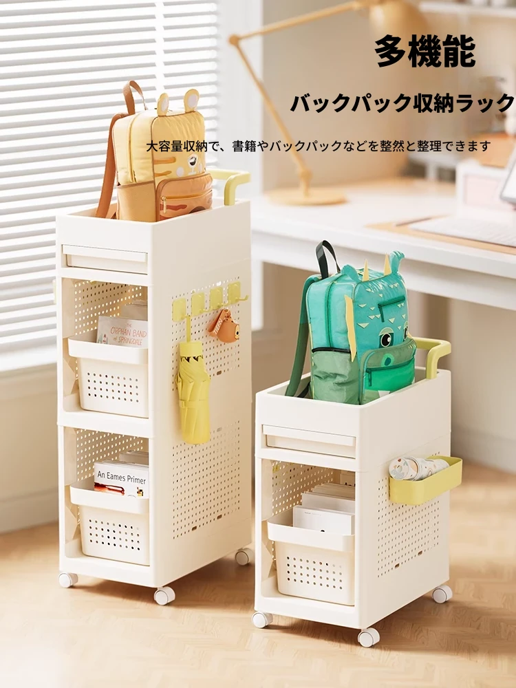 子供向けの可動式ブックスタンド!おしゃれな収納ラック、教科書やおやつ、おもちゃをすっきり整理!デスク下にもぴったりフィット。簡単に移動できるから、どこでも使える便利さ!