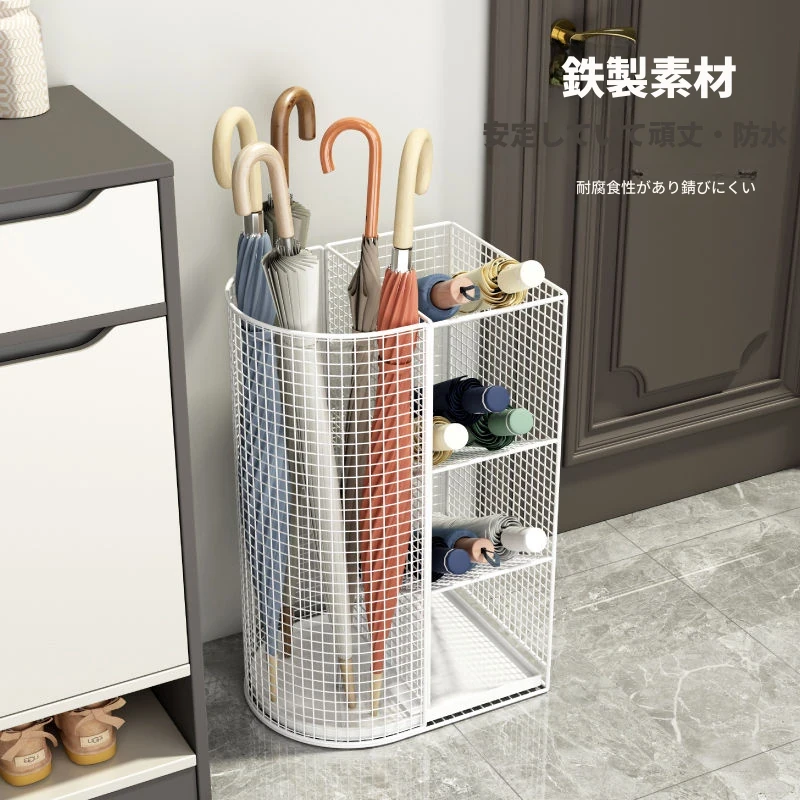雨傘収納ラック・家庭用・玄関用・水切り付き・入室用・雨傘収納バケツ・教室やホテルロビーに最適な傘スタンド!おしゃれで便利なデザインで、雨の日もスッキリ整理整頓!