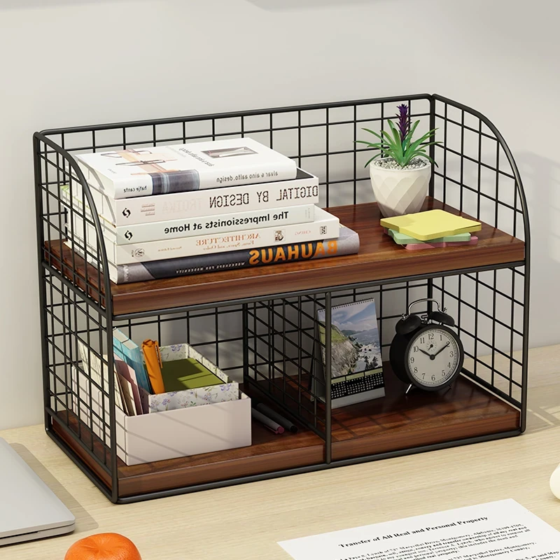 デスク上にぴったり!シンプルなアイアン製ミニ書棚 - 多層収納でオフィスをスッキリ整理!人気のあるおしゃれな本棚で、デスク周りを美しく整えましょう!