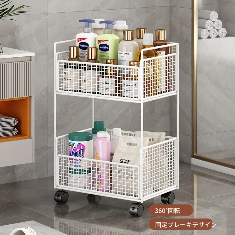 バスルーム収納ラック 多段階の移動式ストレージシェルフ 洗濯機横にぴったりの便利な収納アイテム!限られたスペースを有効活用し、すっきりとしたバスルームを実現します。