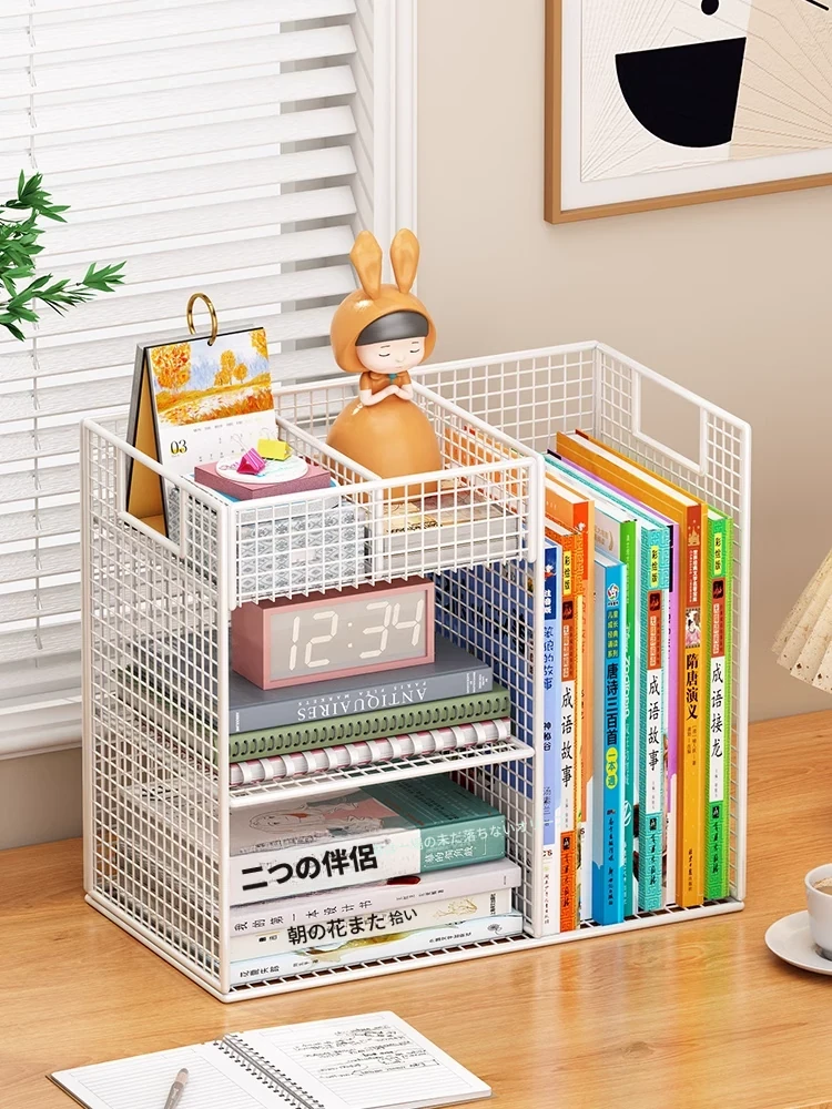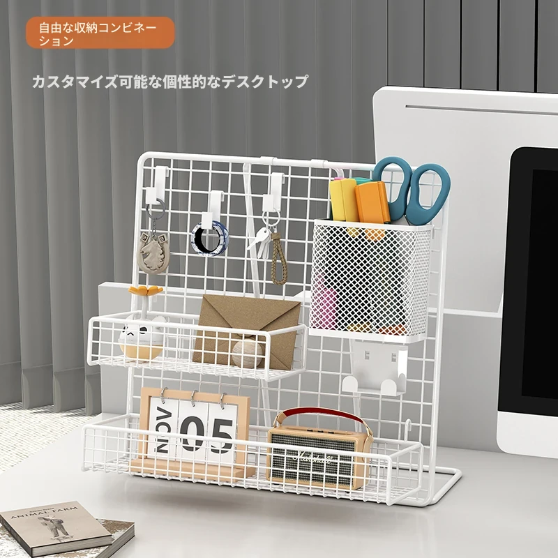 デスク用穴あきボード収納ラック|多段階収納でオフィスや学生のデスクをスッキリ整理!教科書や文房具をスマートに収納できる書棚。使いやすさとデザイン性を兼ね備えた必需品!